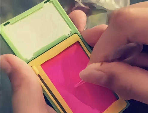 这种画写板分为两种,一种是这种粉色底板的,字写上去之后可以用把外面的粉色的盖子拿起来再放下去字就没了,当然有可能小时候买的借口就是临时记录一些东西?